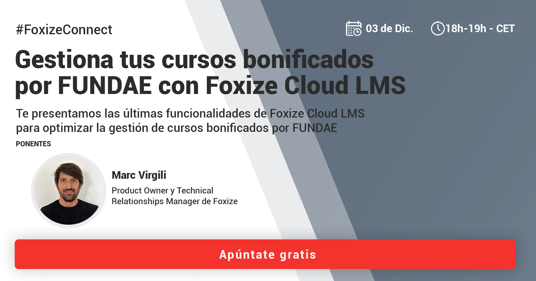 En esta sesión, Marc te presentará las últimas funcionalidades de Foxize Cloud LMS, diseñadas para optimizar y simplificar la gestión de cursos bonificados por FUNDAE.